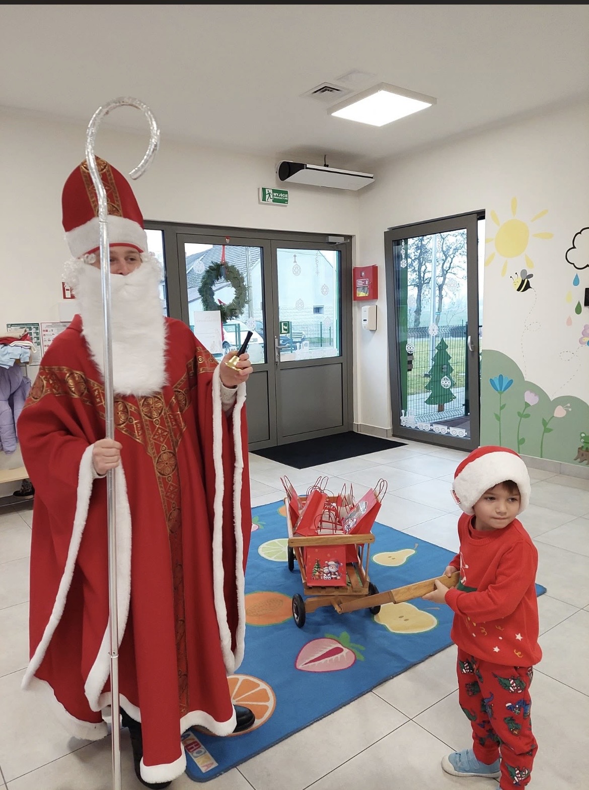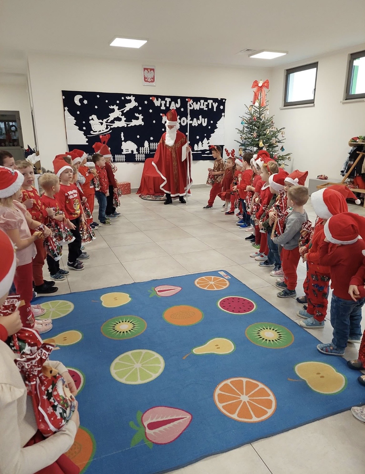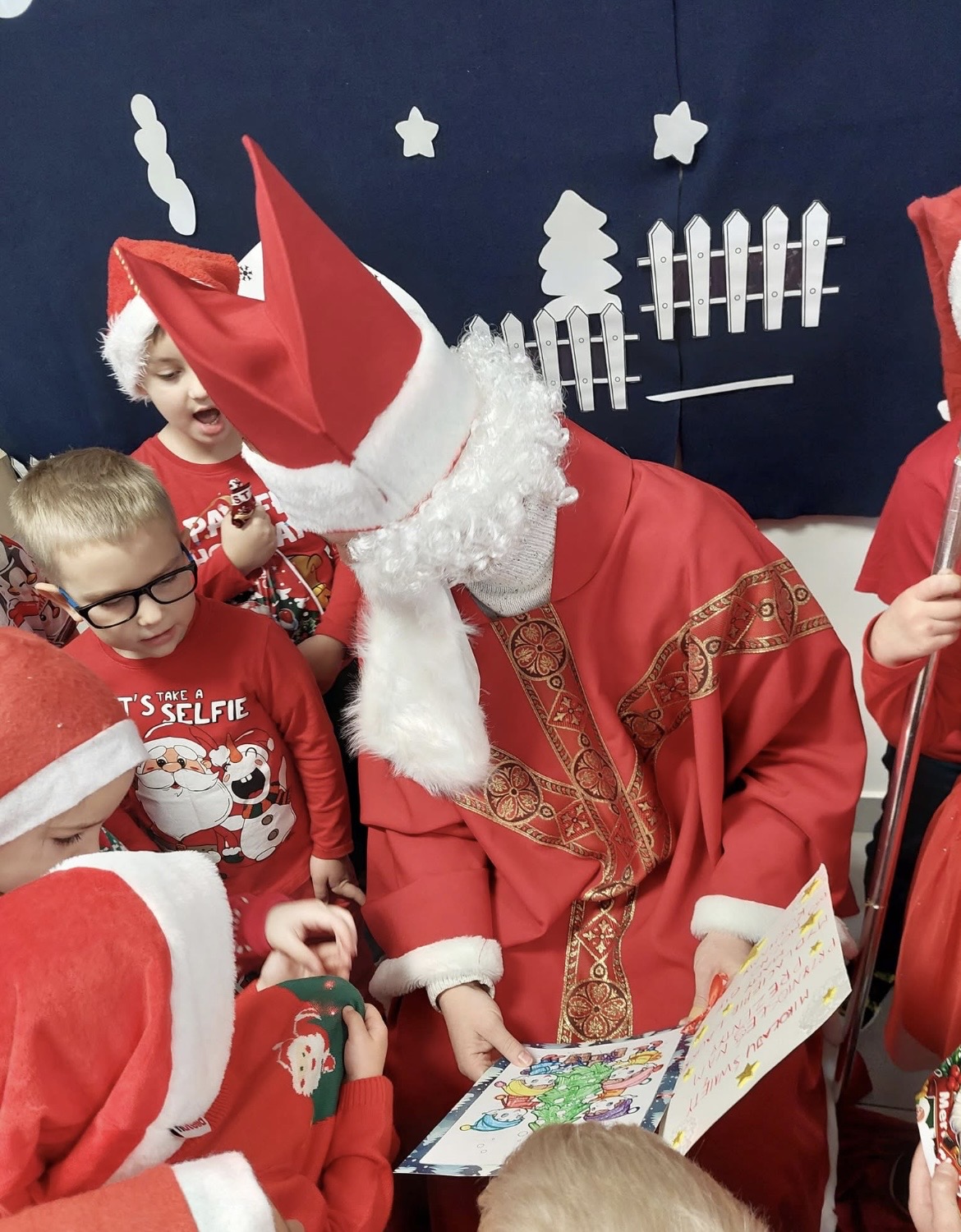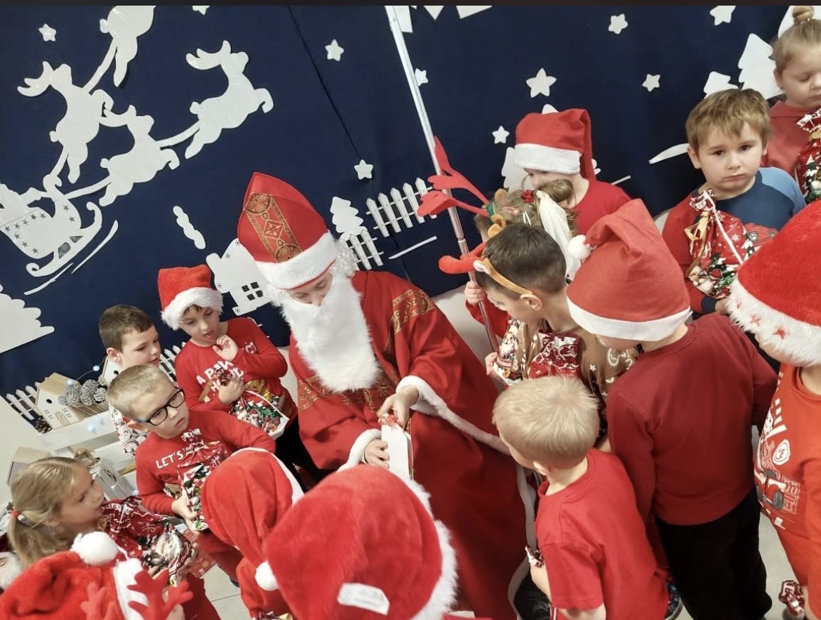 Tradycyjnie 6 grudnia tradycyjnie odwiedził na Św. Mikołaj. Nasz gość wysłuchał mikołajkowego występu przedszkolaków i rozdał wszystkim dzieciom prezenty. Dzieci przygotowały dla Św. Mikołaja laurki, które Święty z przyjemnością przeczytał i zabrał na pamiątkę. Szczególne podziękowania dla Rady Rodziców za pomoc w organizacji spotkania ze Świętym Mikołajem.